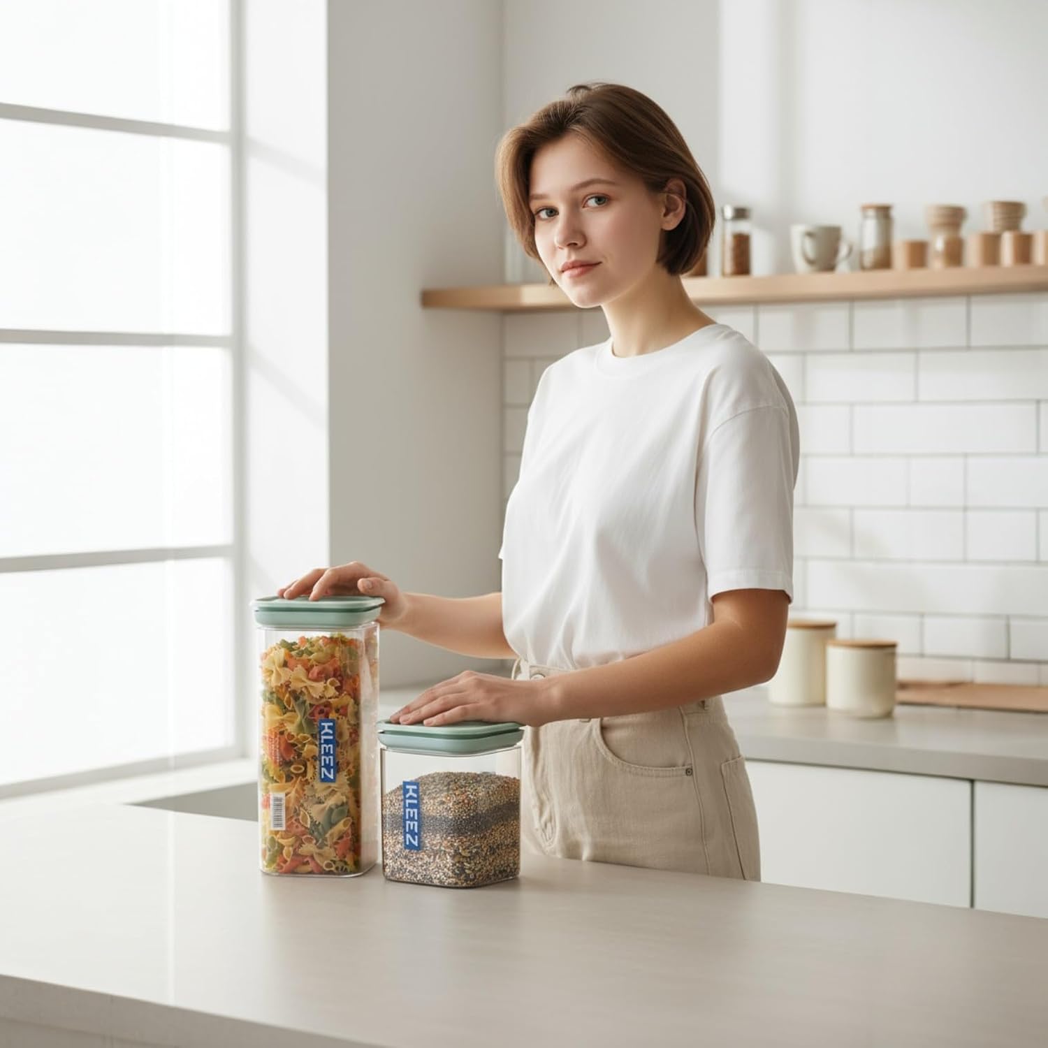 Keep your kitchen organized with this Set of 2 Airtight Food Storage Containers (1300cc & 500cc). Made from BPA-free transparent plastic, these durable jars feature airtight lids that help block air and moisture, keeping cereal, pasta, coffee, grains, and other dry foods fresh for longer. The stackable design saves space in your pantry or cabinets, while the clear body allows you to easily see the contents inside.