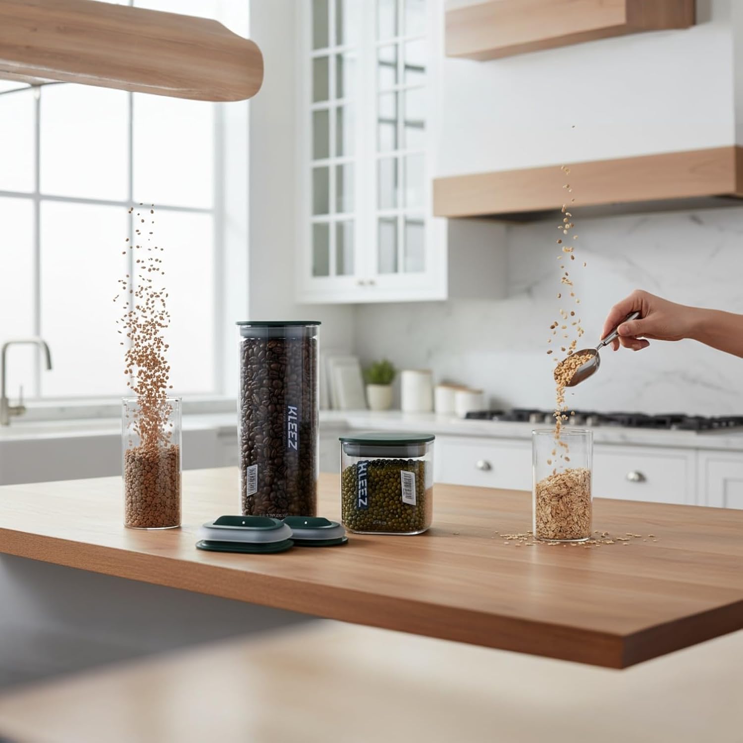 Airtight Food Storage Containers Set (2pcs) – BPA-Free Clear Pantry Jars 1300cc & 500cc for Cereal, Pasta & Coffee